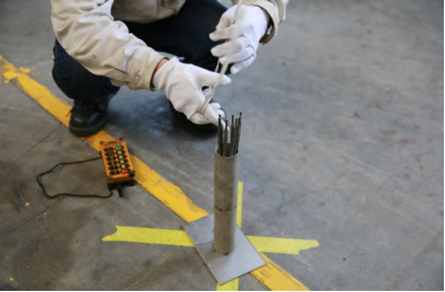 将细小的焊条用10T行车吊运,插装到10MM的钢管内,三分钟内插入焊条多者获胜。